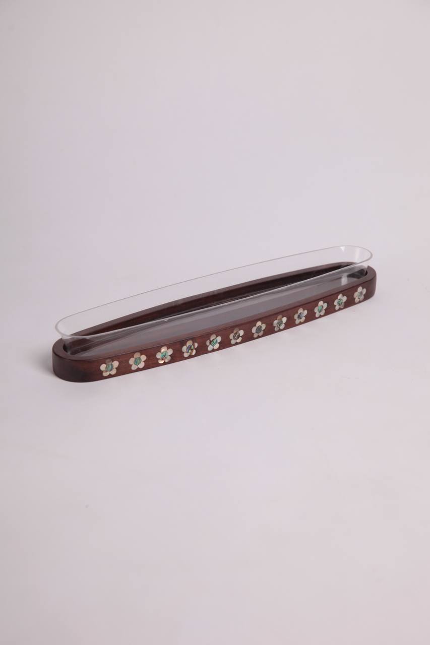 Msadaf wooden small serving tray with plixiglass tray on top . pattern : Flowers